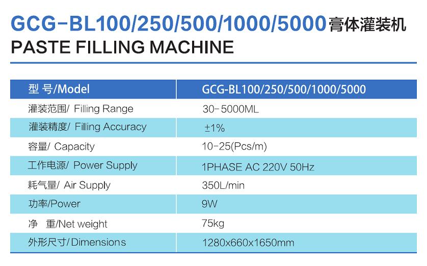 GCG-BL100/250/500/1000/5000 膏體灌裝機(jī)